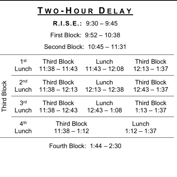Bundle up tomorrow, Raiders! โ๏ธ Here is our two-hour delay schedule you will follow.