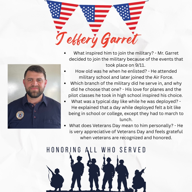 Today, weโre proud to spotlight Mr. Jeffery Garrett, one of the CHS veterans weโll be honoring during the parade. His story and interview were thoughtfully put together by CHS student Caitlyn Roman Sanchez โ great job, Caitlyn!
