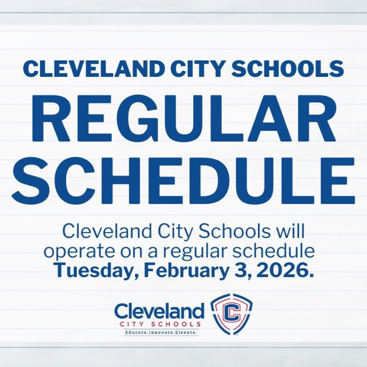 Cleveland City Schools will be closed Monday, February 2nd, due to winter weather and extremely low temperatures. The safety of our students and staff remains our top priority. We will continue to monitor conditions and share updates as needed. Updates regarding extracurriculars will be provided as necessary.