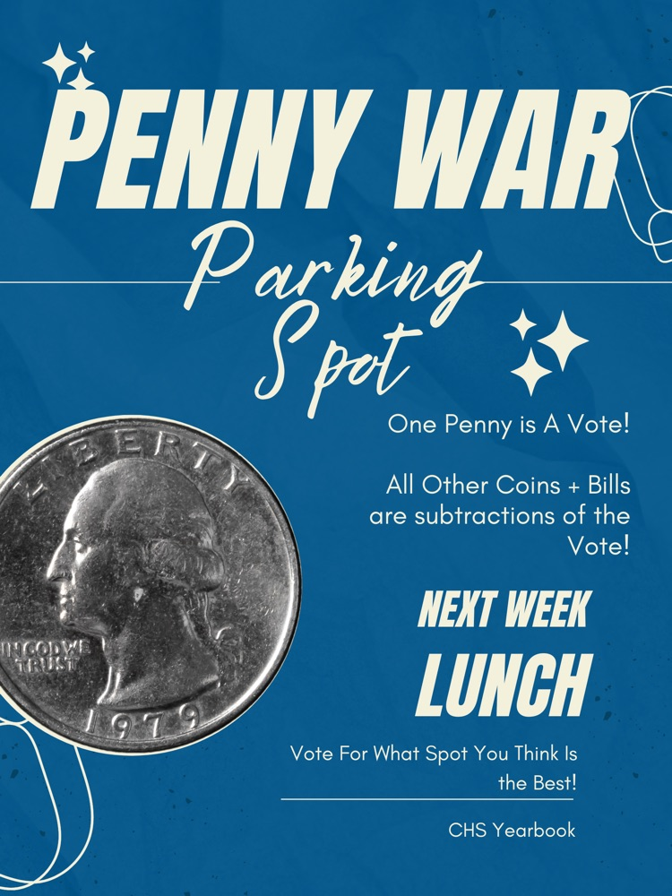 Who will be the Parking Spot Picasso??? Top 5 were chosen by teachers, come participate in the penny war at lunch all week for the BEST spot!