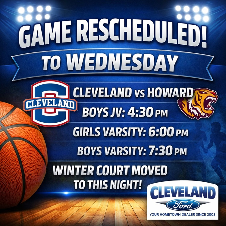 The basketball game against Howard has been rescheduled to Wednesday night. Winter Court ceremonies will be during halftime of the boys' game. See you there, Raiders!